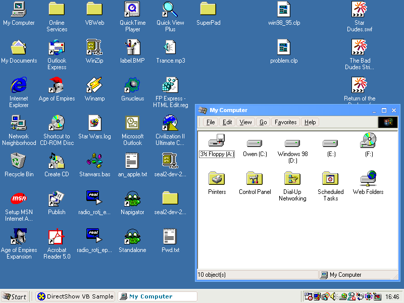 OS: Windows 98 SETools Used: WindowBlinds 2.2 Skin: Flute+System Resources Free At Time Of Screenshot: About 20% (thank you memory leak in Explorer)