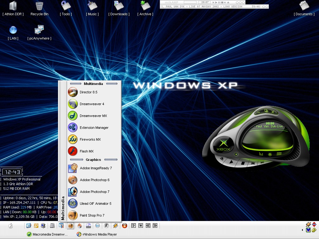 OS: Windows XP Using the Milk Visual Style, along with MilkAMP Media Player 8 using X-Box skin