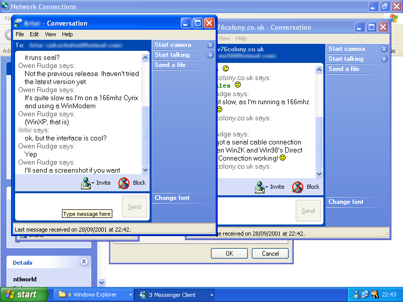 I've had Windows XP installed now since around September 2002, and over the course of time, I've taken some screenshots of various things now and then. Here is my collection of Windows XP screenshots. Click on each for the full picture, in PNG format unless otherwise specified. [Please note that this page was made when I was using Windows XP RC2 and when Windows XP was still quite a novelty.]