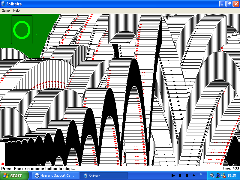 Solitaire, after I won once again. (The menus in this version of Solitaire are identical to those in Windows 3.0, and the System font is still used for messages in the status bar!)